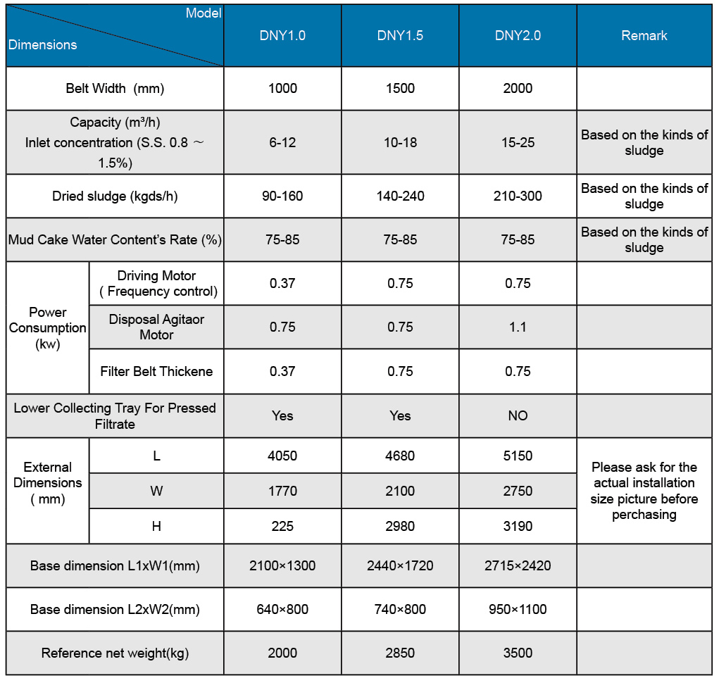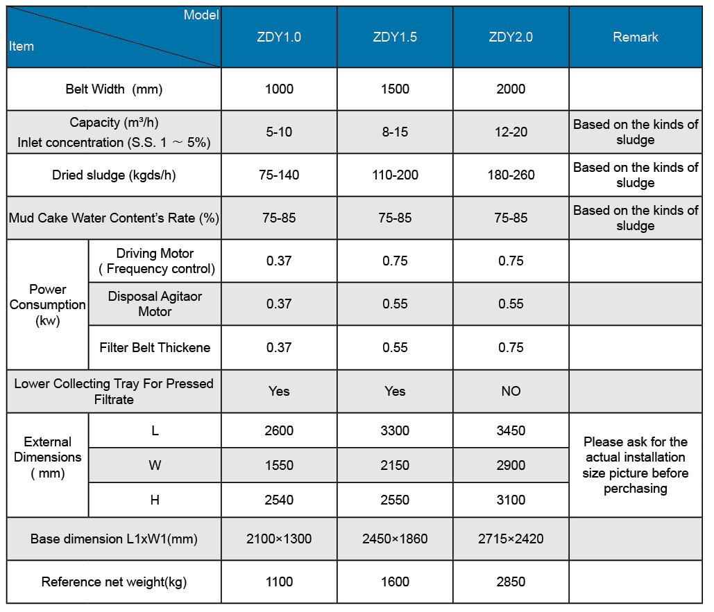 La prensa de filtro de cinturón se usa principalmente para procesar los lodos que no se concentran en el grupo de engrosamiento, como los lodos residuales de A / O, los lodos residuales SBR. Tiene dos funciones: concentración y deshidratación. De acuerdo con la diferencia en el procesamiento de la sección de concentración, se desarrollan dos tipos de productos, pulsación de filtro de filtro de banda giratoria y filtro de cinta de gravedad.