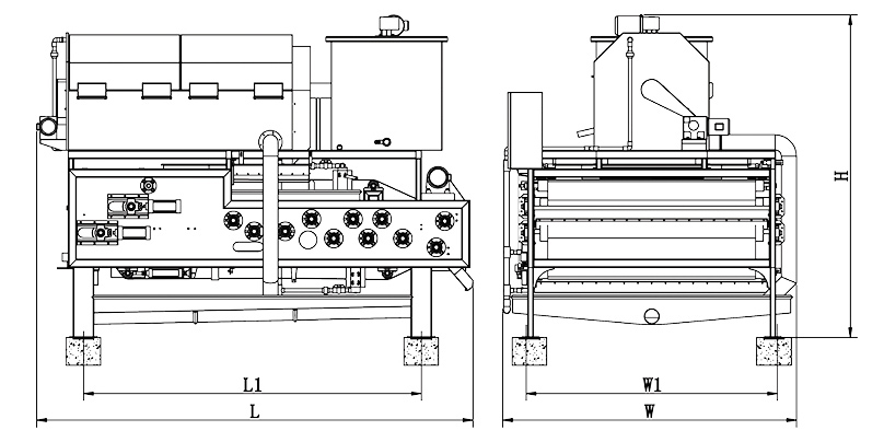 ![]() Pulsación de filtro de cinturón de tambor rotatorio Pulsación de filtro de cinturón de tambor giratorio utiliza la concentración de tambor giratorio para pre-dewater los lodos, que tiene dos funciones: concentración y deshidratación. Su capacidad es más alta que la otra máquina de prensa de filtro simple. | ![]() Pulsación del filtro de la correa de gravedad La prensa del filtro de la correa de gravedad es diferente de la prensa del filtro de la correa del tambor giratorio en la estructura. El lodo está deshidratado por la gravedad, este dispositivo se usa en la mayor capacidad. |