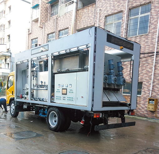 De acuerdo con cada solicitud de tratamiento de aguas residuales, la unidad de tratamiento de lodos móvil se puede mover al sitio y se puede mover para deshidratar el lodo en el tanque de lodos de fábrica de tratamiento de aguas residuales. Durante la operación, el primer paso es abrir la unidad de preparación de polímeros para mezclar completamente el polímero. Luego, los lodos se bombean con la bomba de lodos del tanque de lodos al tanque de mezcla y flocculo de la prensa de tornillo, en la que se mezcla el lodo con el floculante alimentado por la bomba de dosificación. Luego, los flujos floculados en el cuerpo principal de la prensa de tornillo volúte se deshidratan. Después de deshidratar, la torta de lodos se transporta por la prensa de tornillo, y el filtrado volverá al sistema de tratamiento de aguas residuales para ser procesado nuevamente.